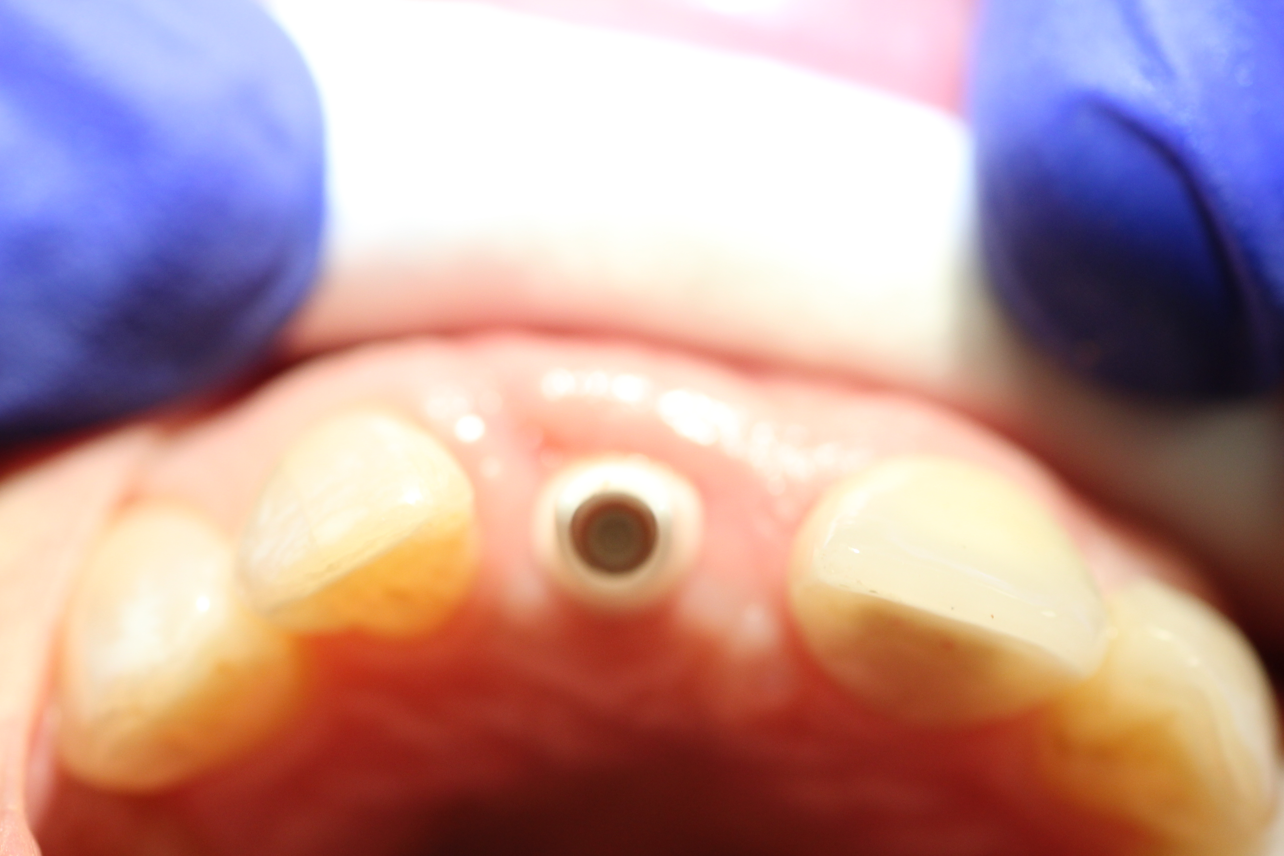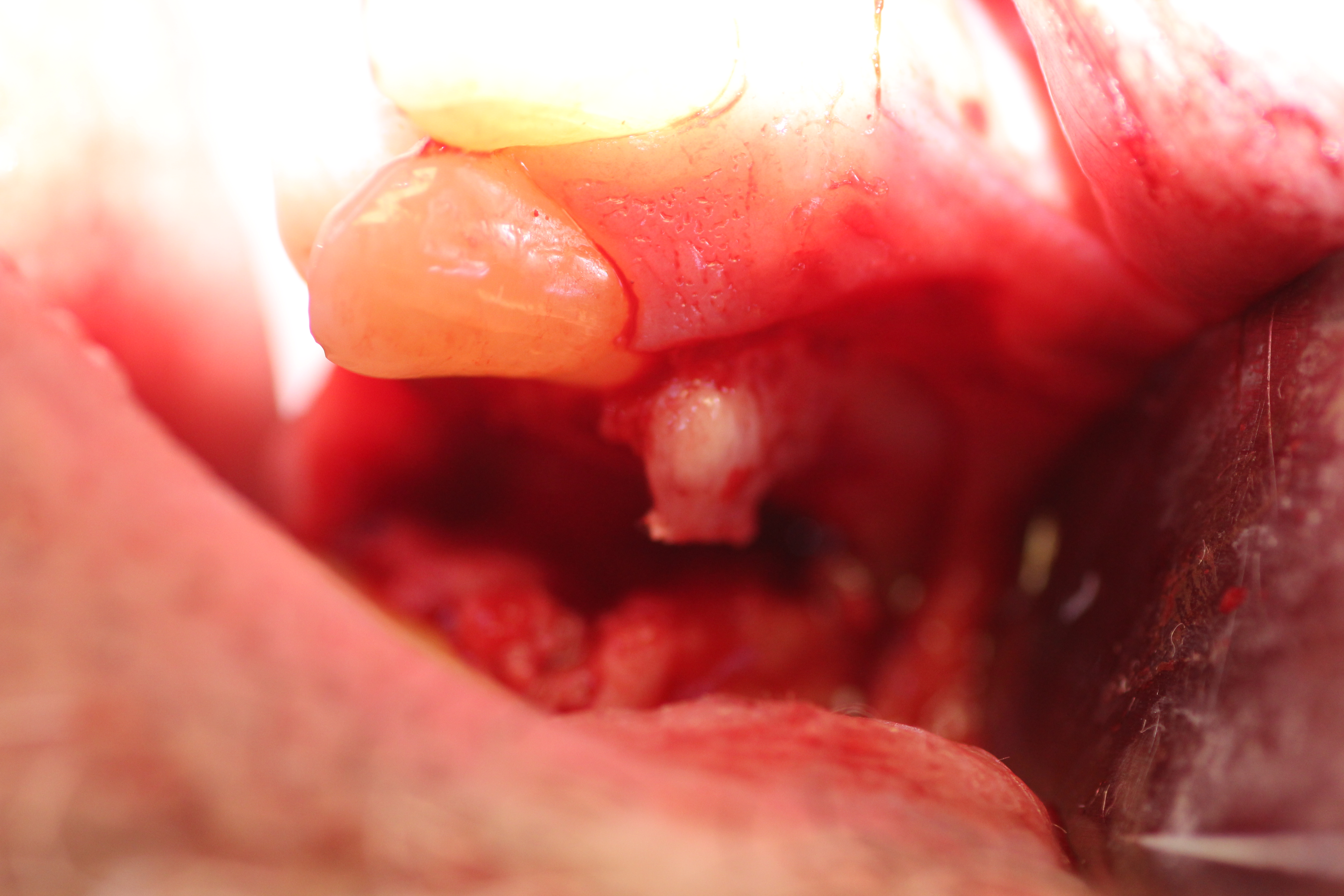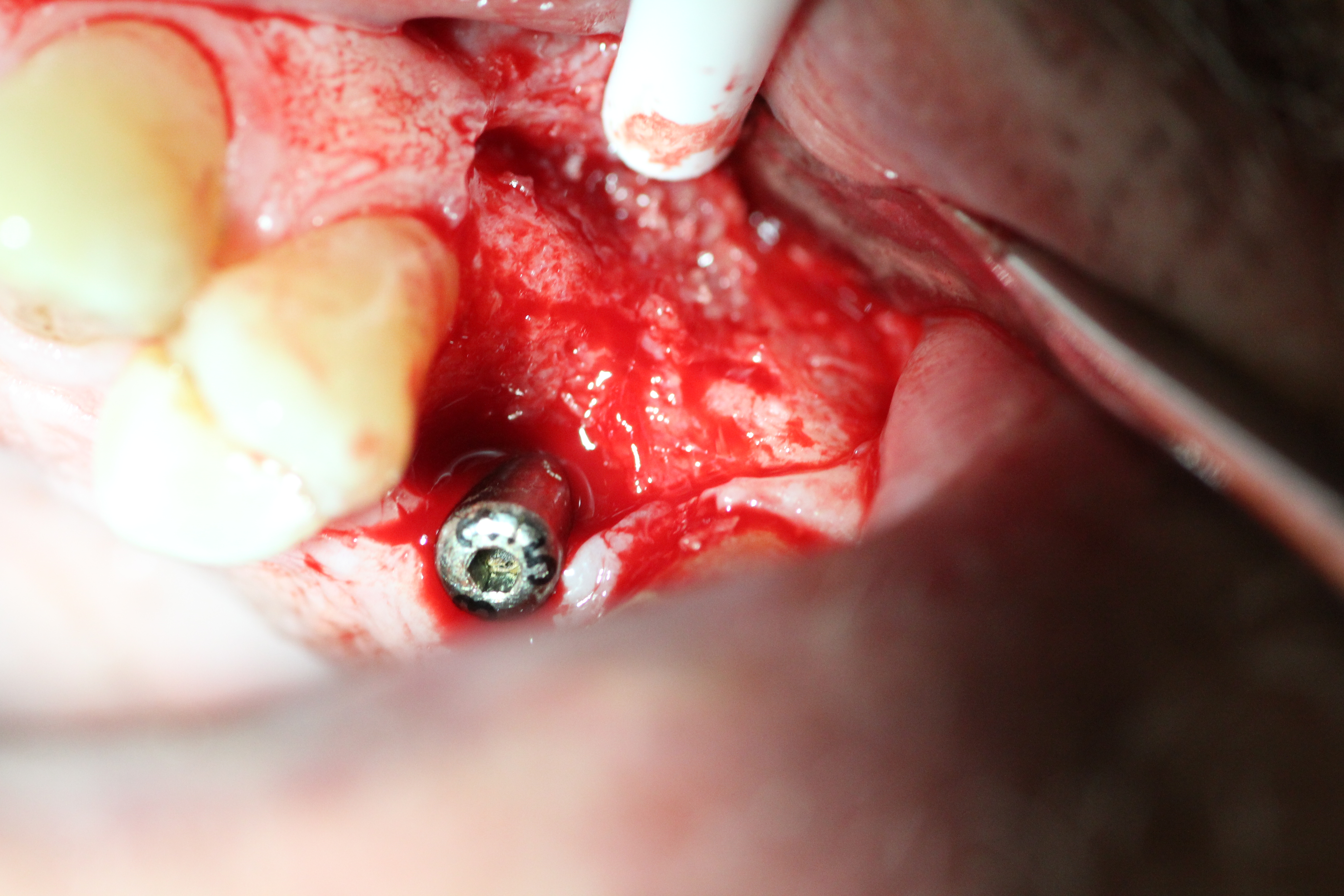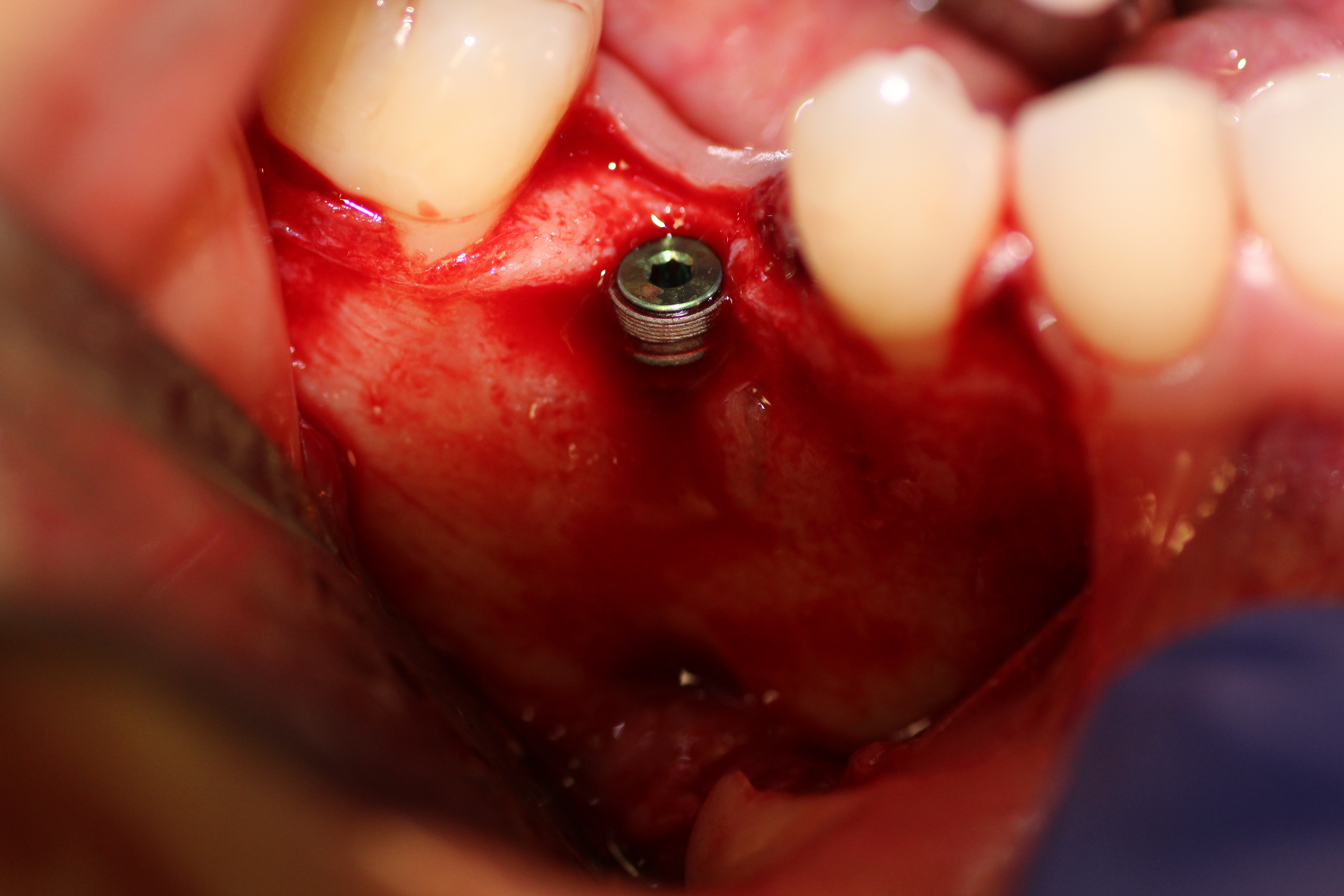 - 2nd stage surgery, membrane removed. Shows nice bulk of buccal bone.