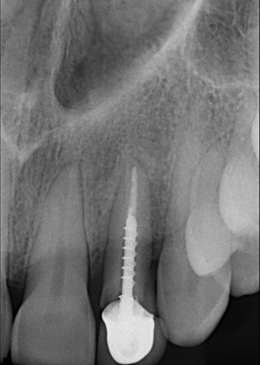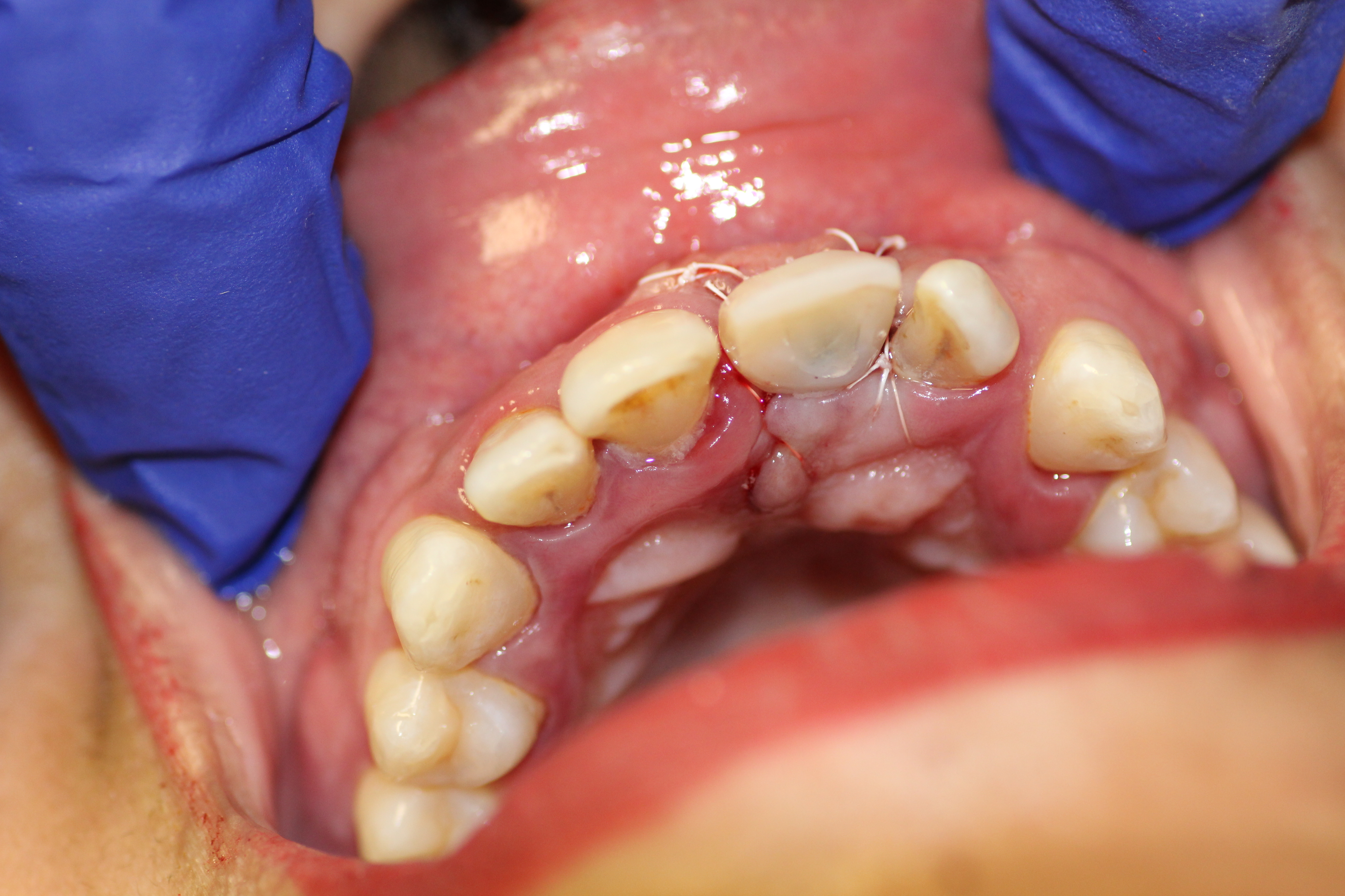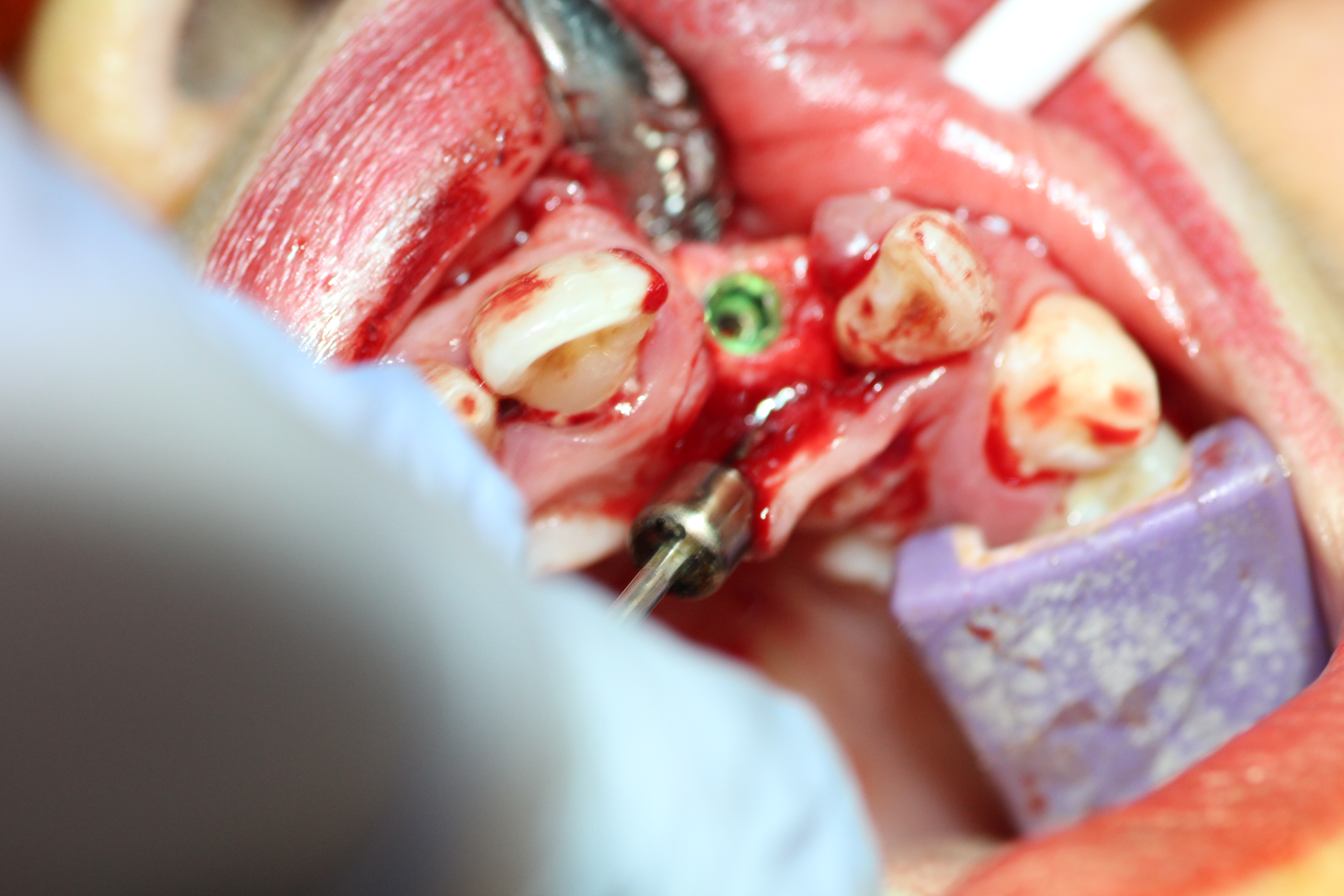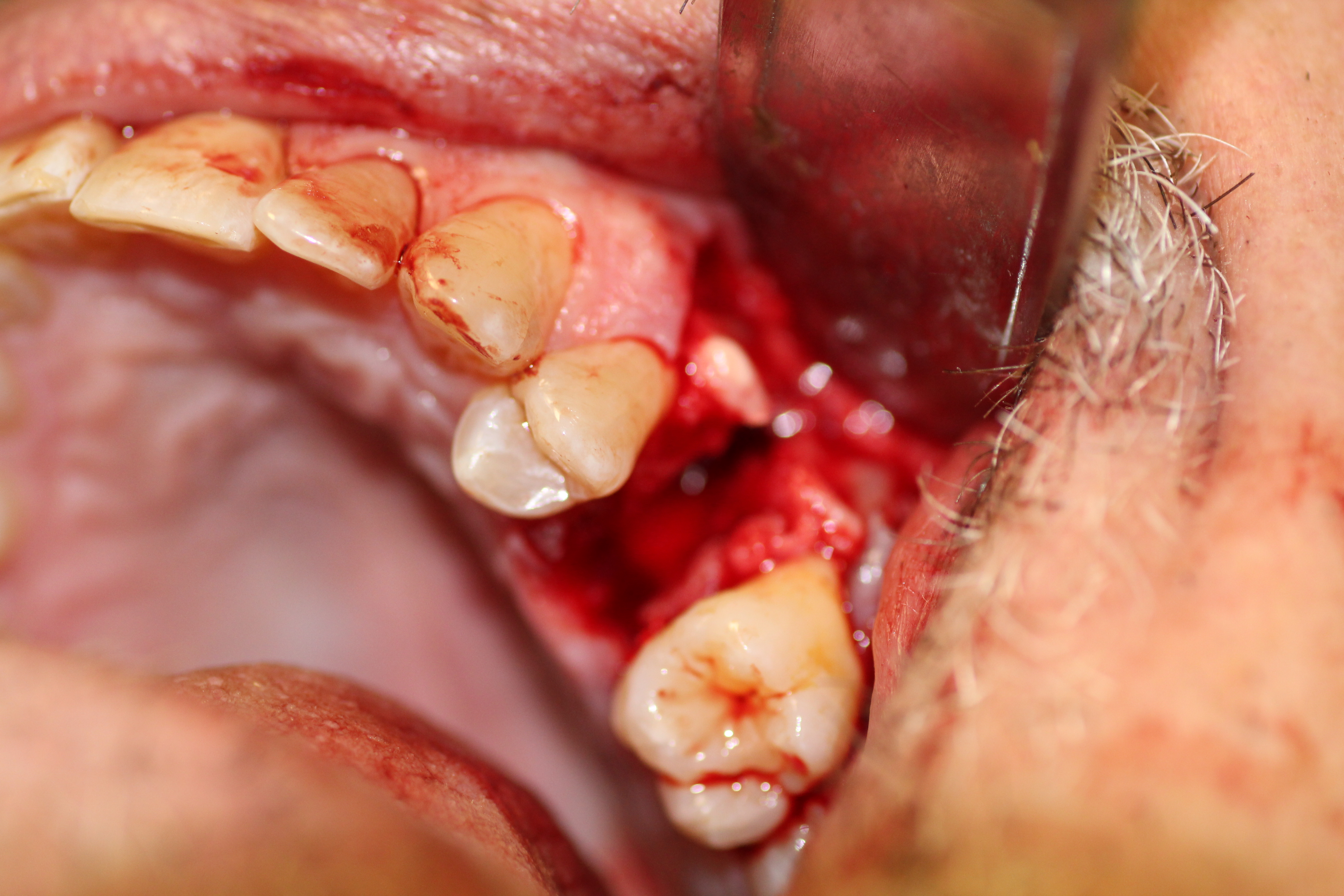 - 2nd stage surgery, membrane removed. Shows nice bulk of buccal bone.