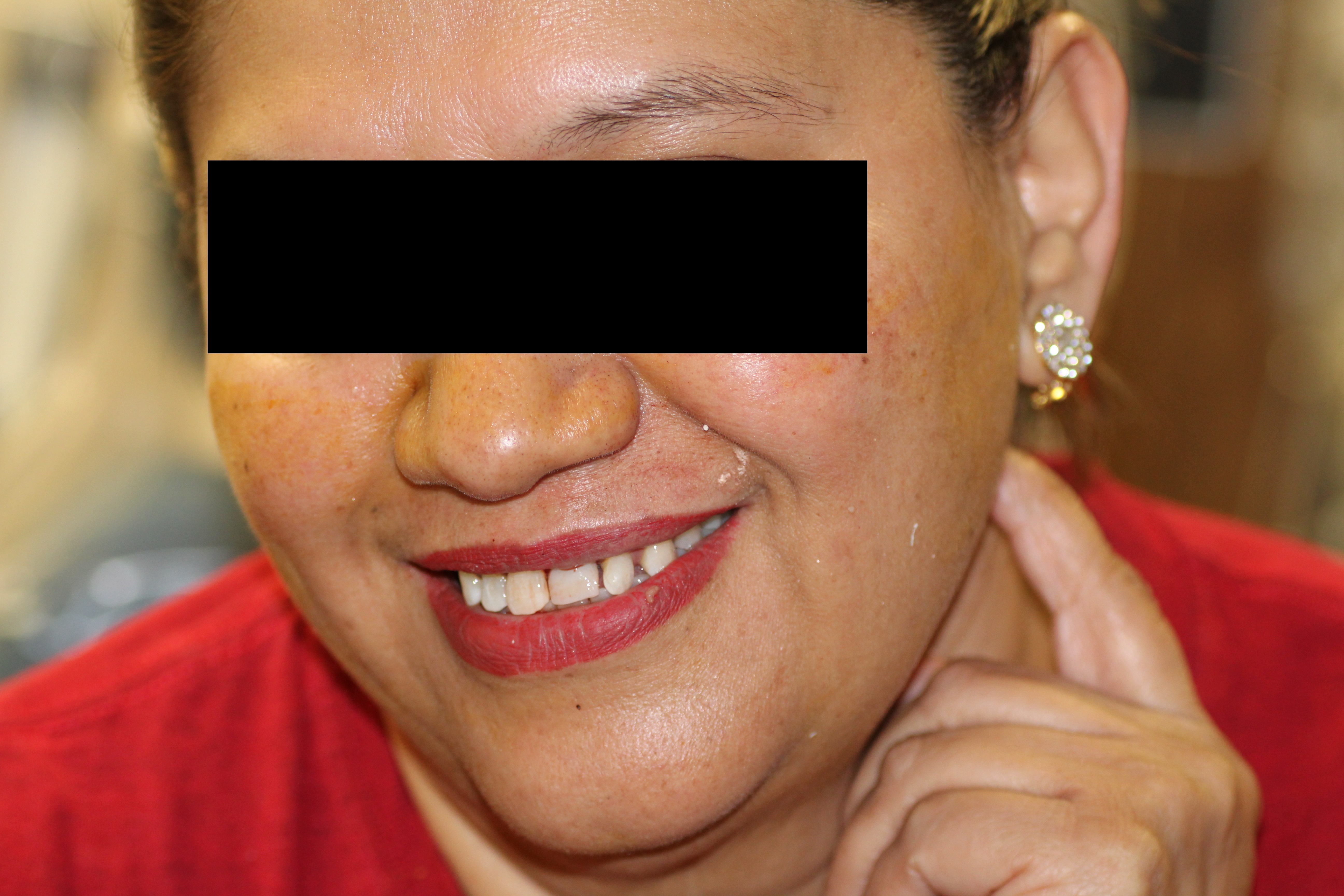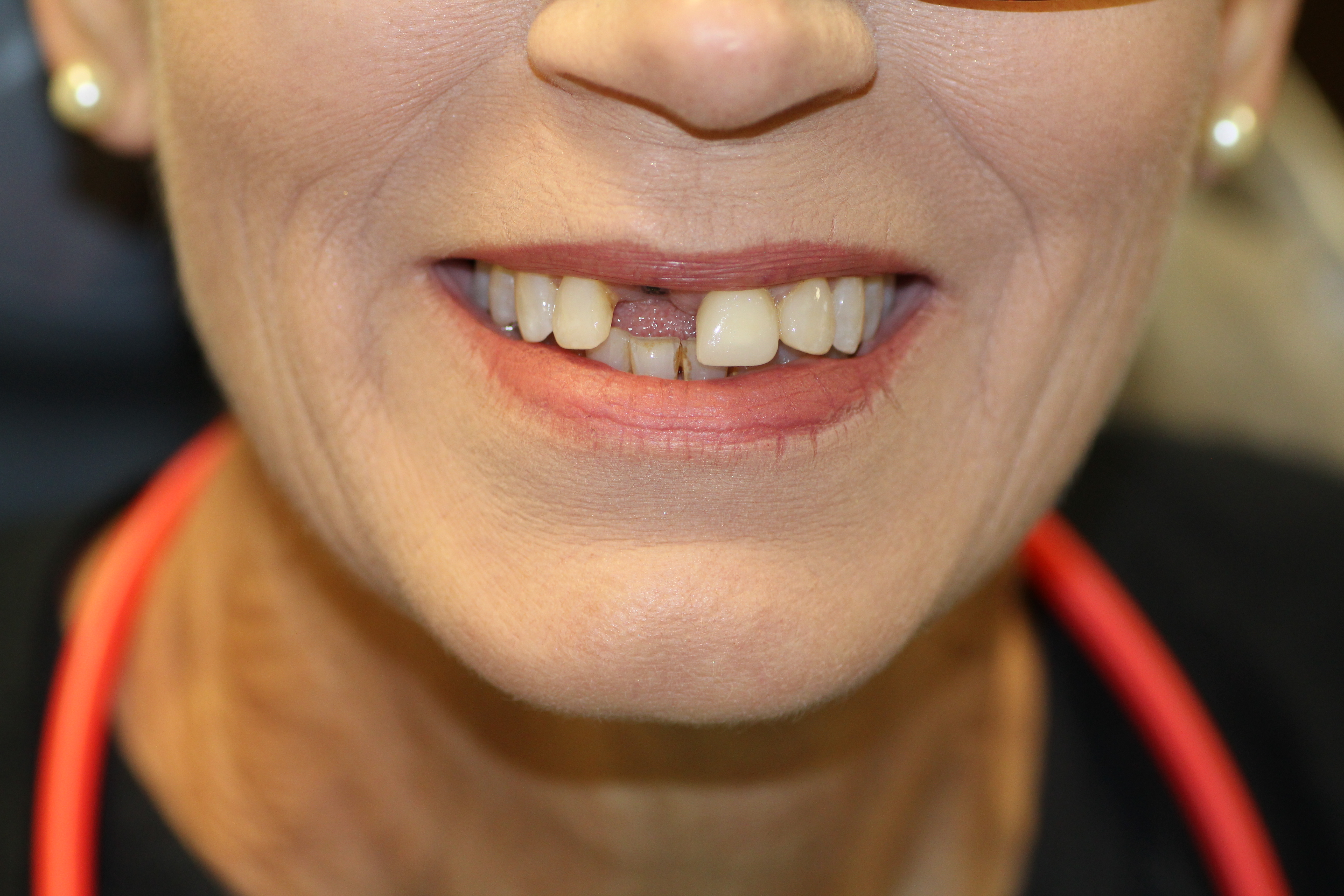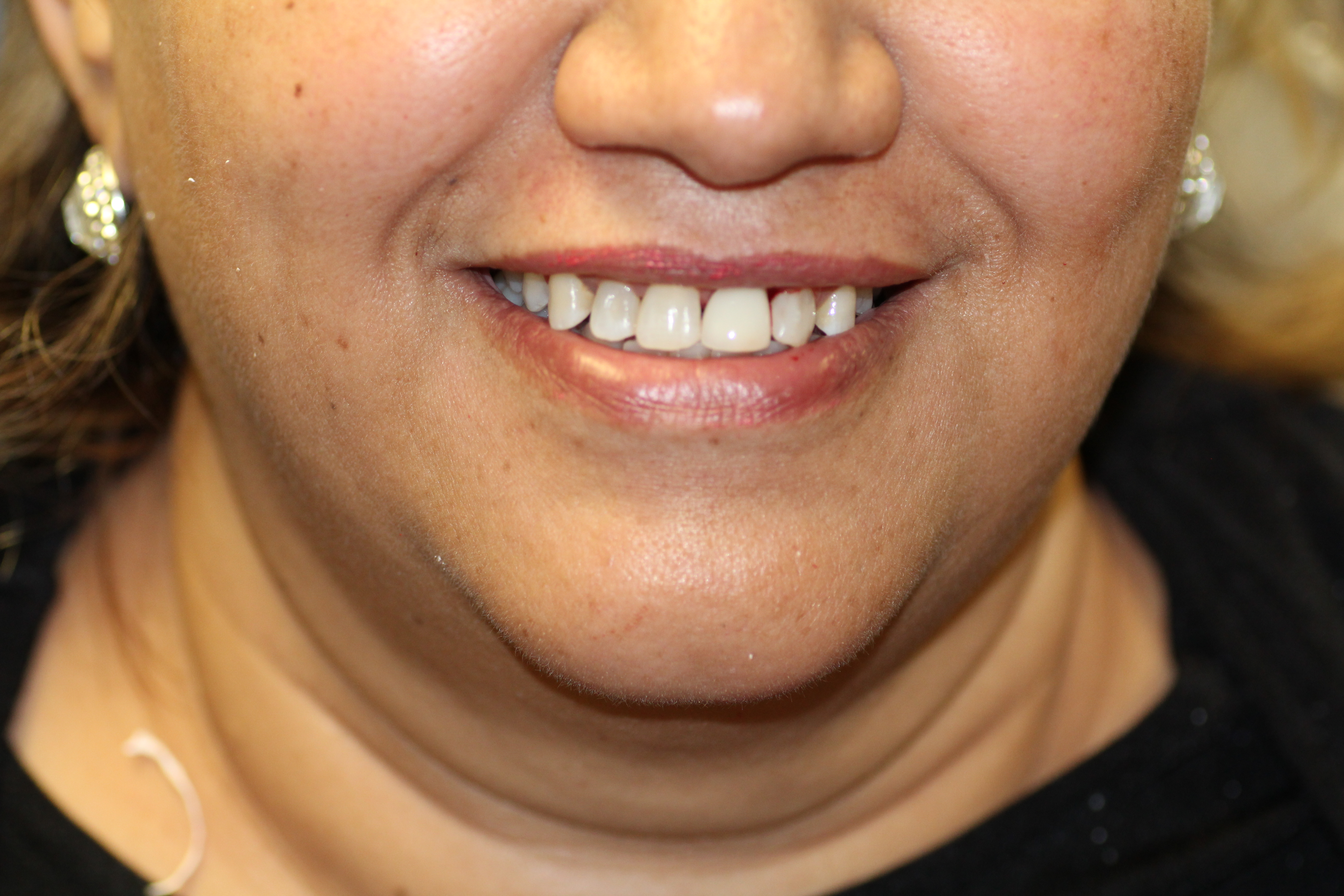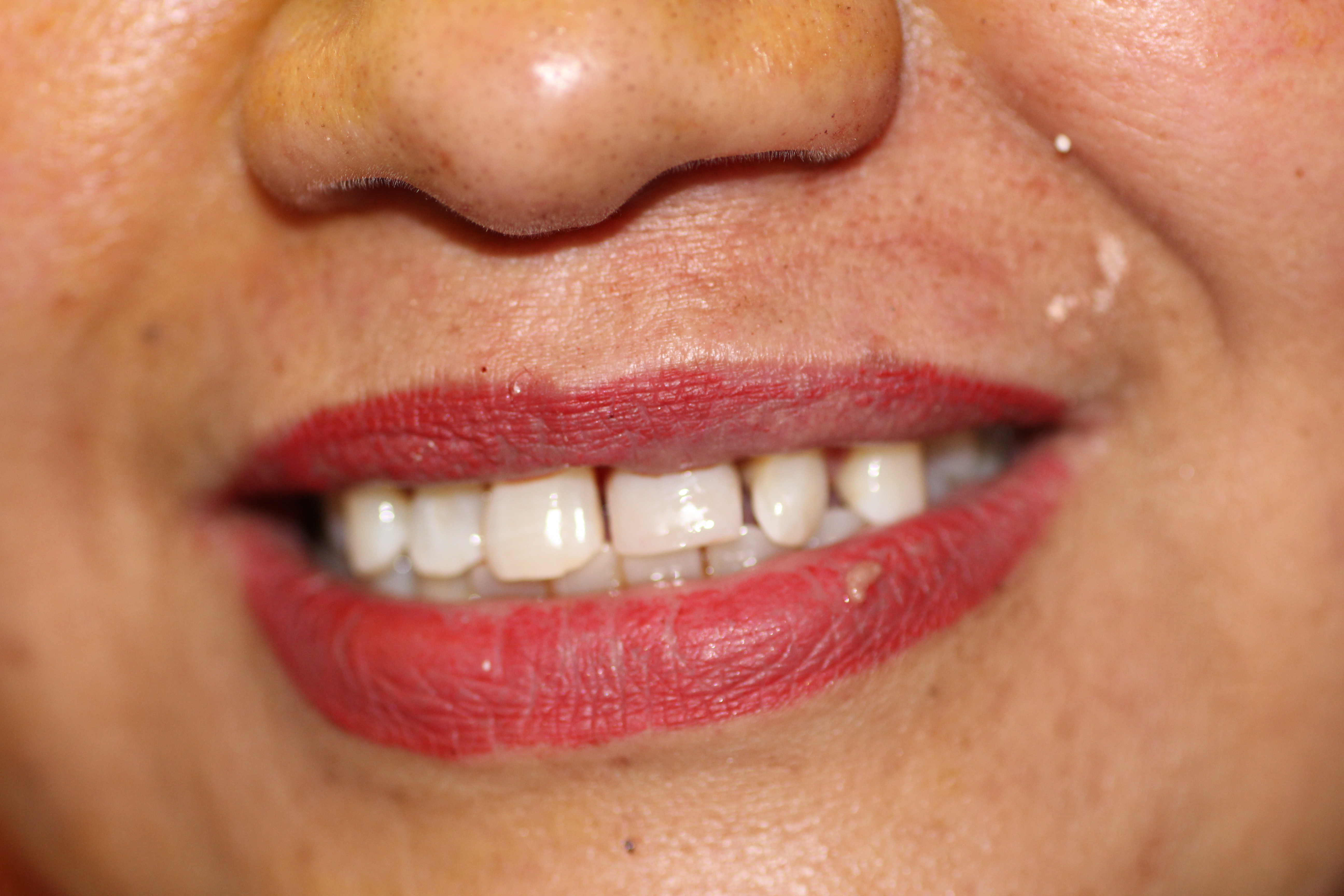 - Here shown is the patient with her implant smiling after the implant treatment.