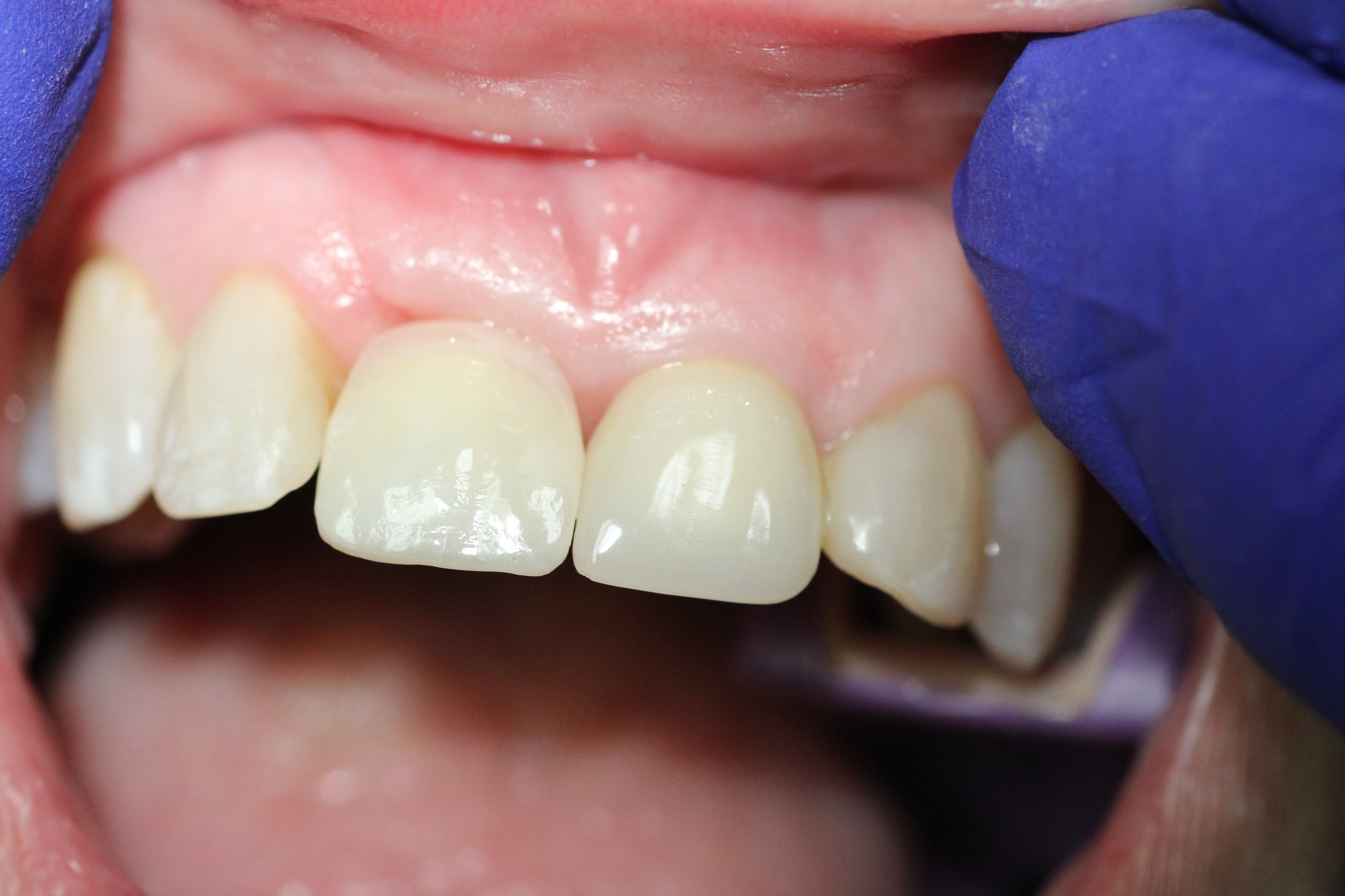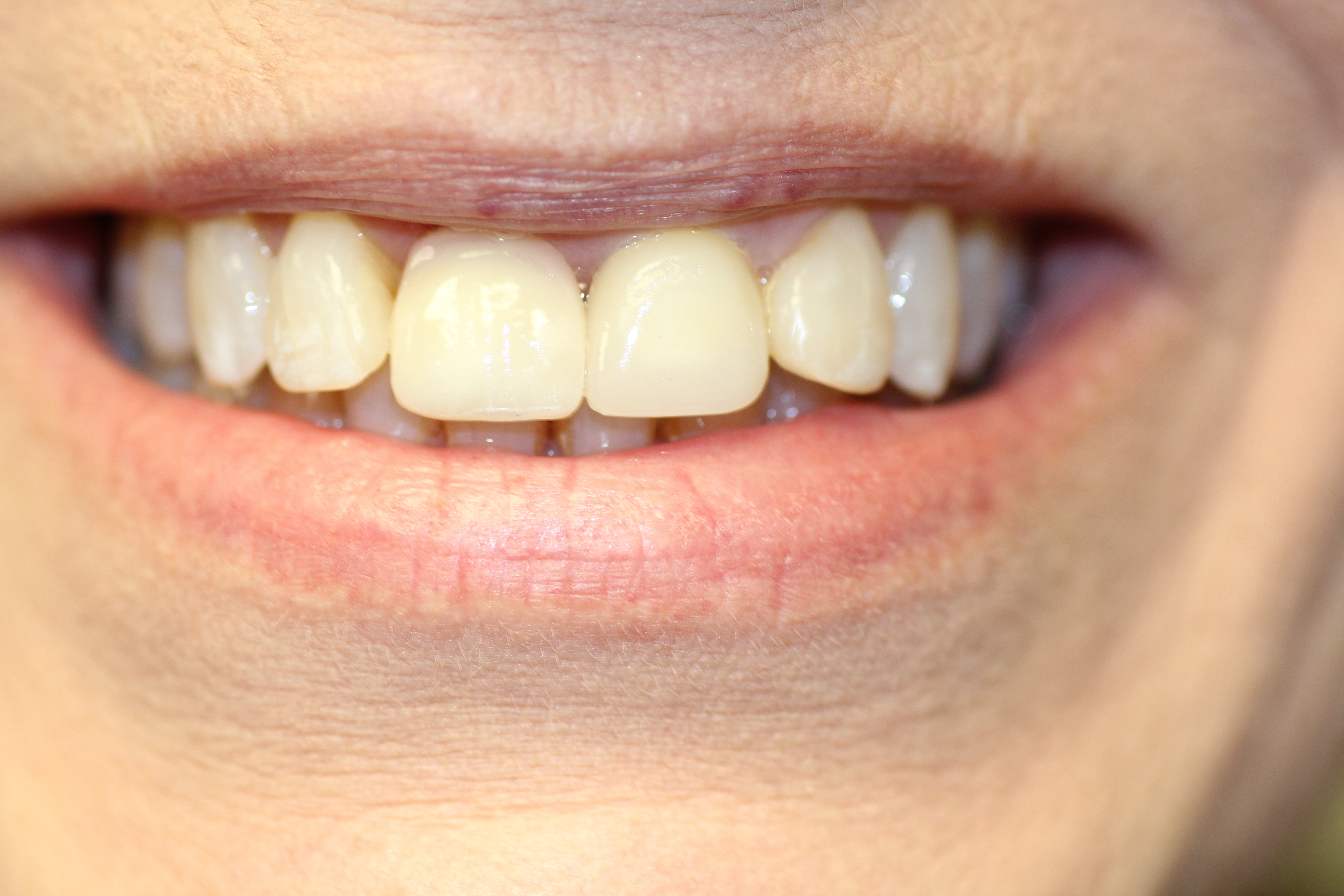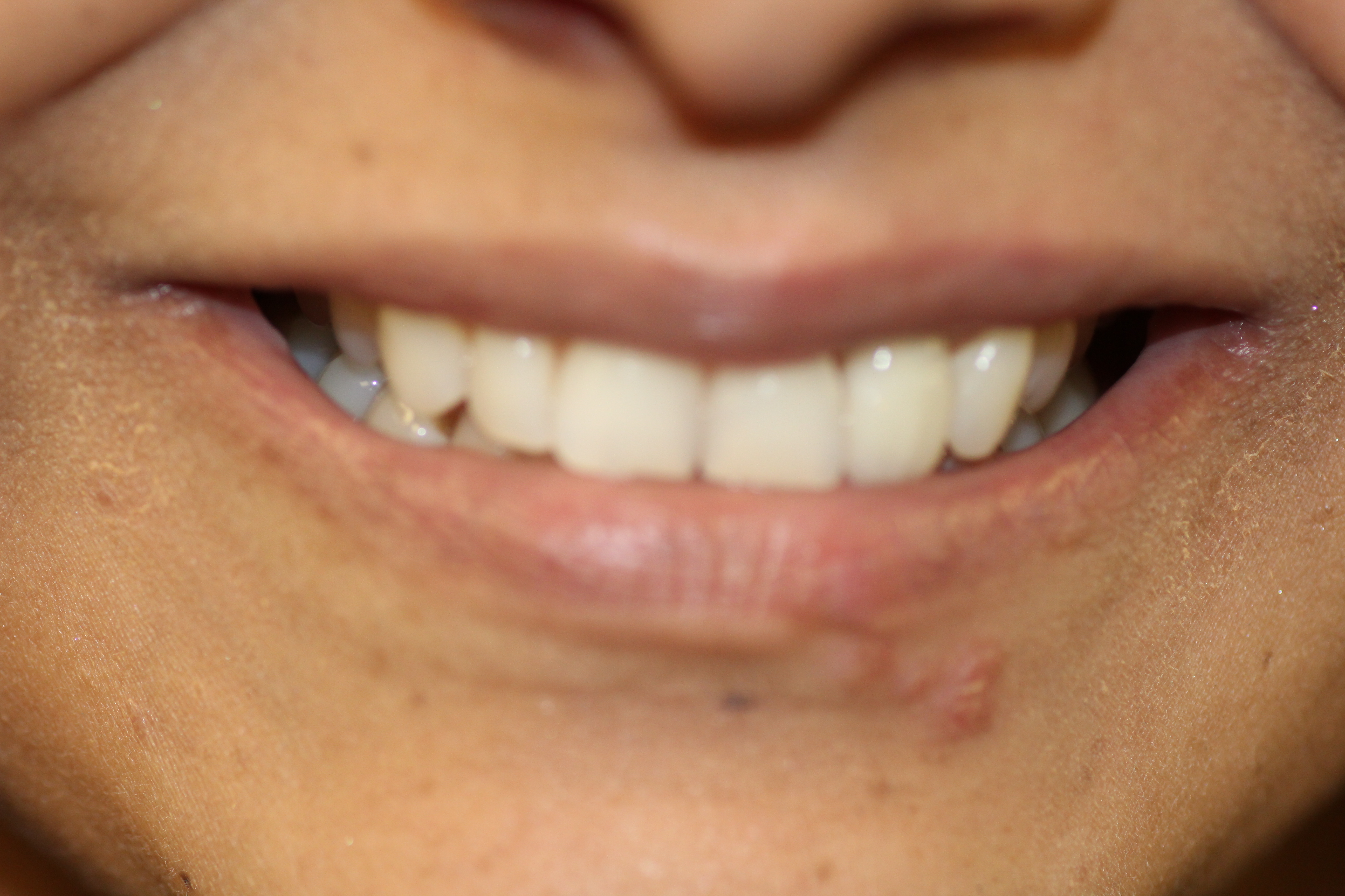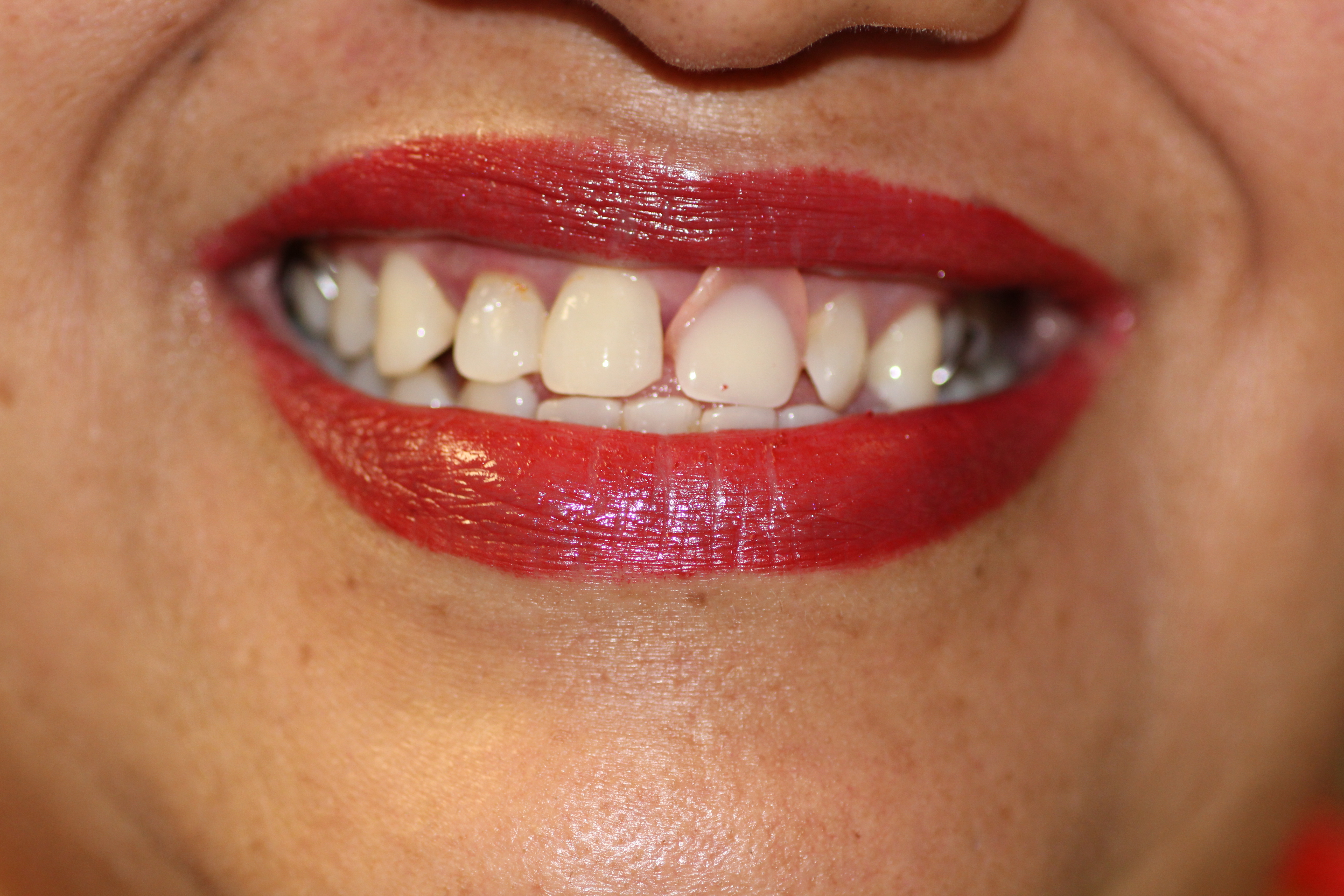 - Here shown is the patient with her implant smiling after the implant treatment.