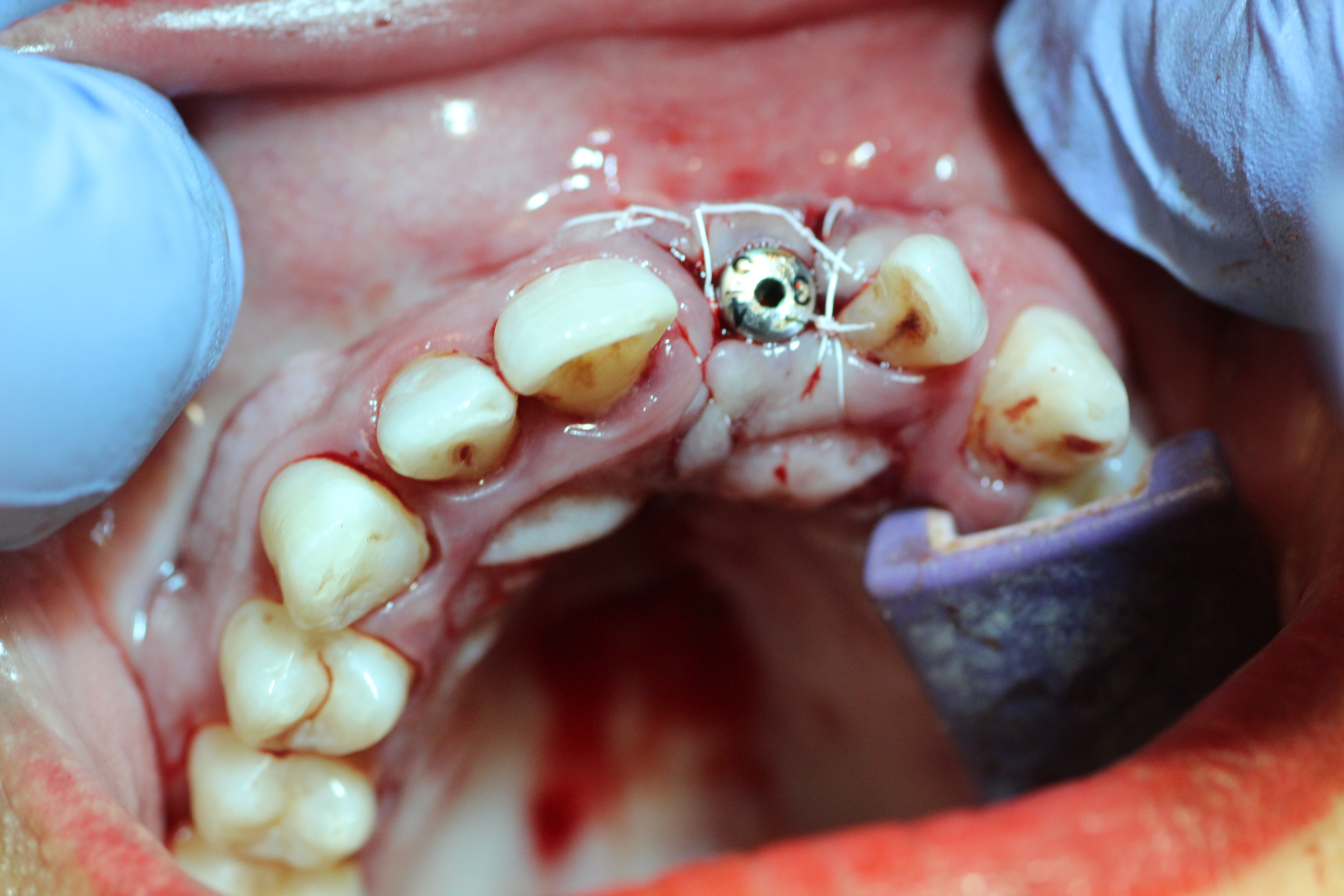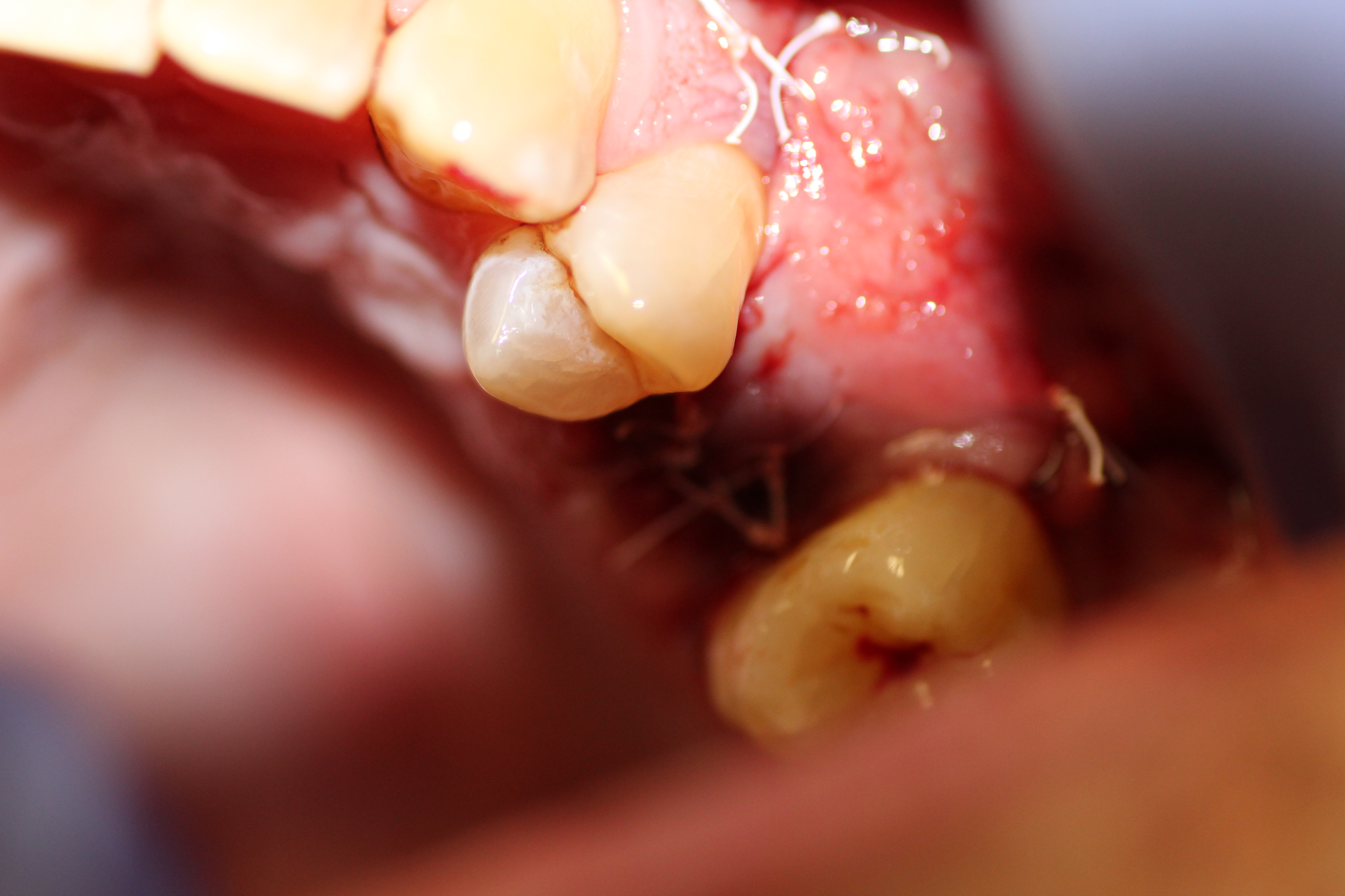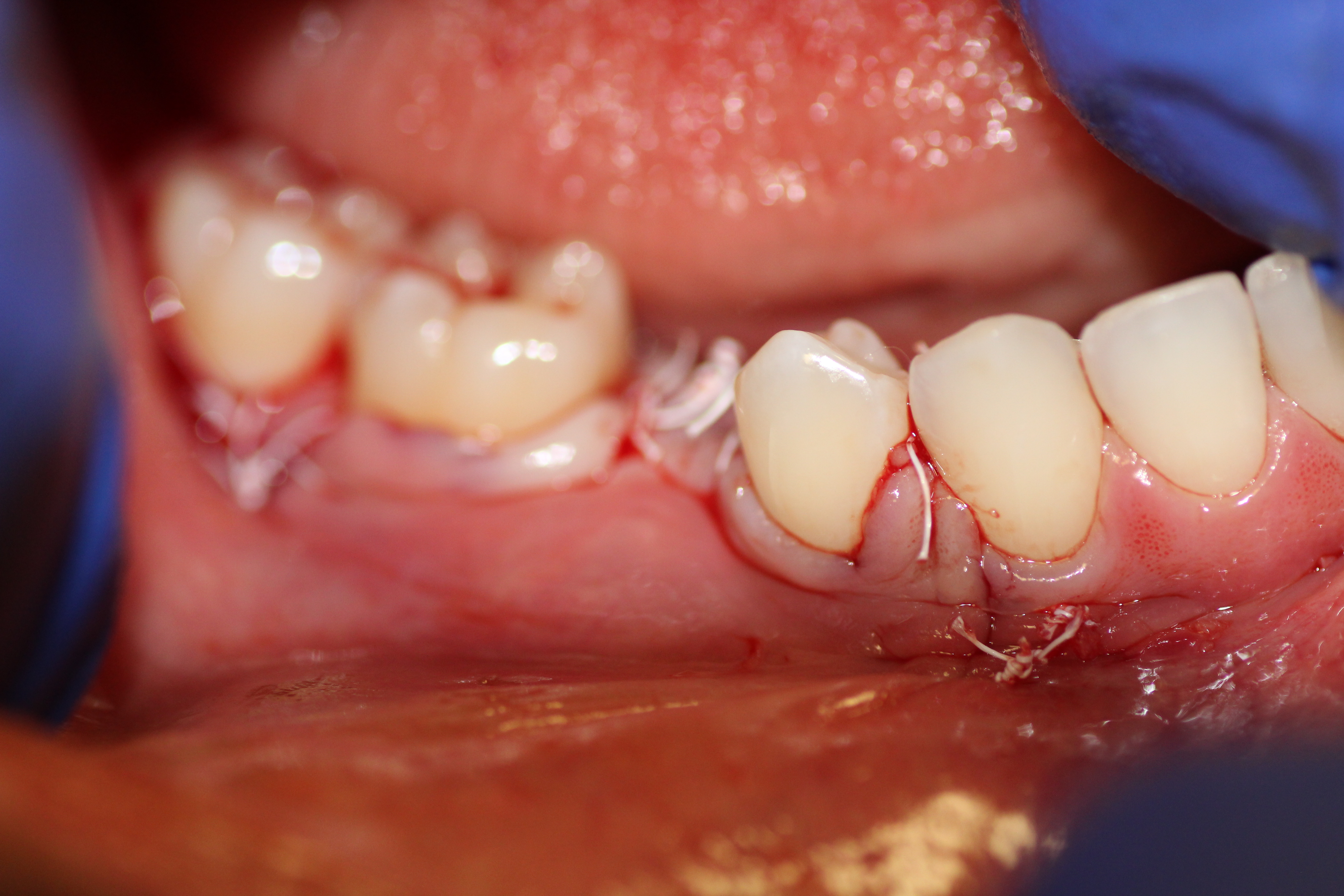 - Bone graft stabilized with PFTE membrane and fixation sutured.